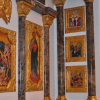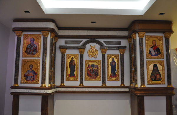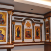 Великолепный домашний иконостас займет достойное место в интерьере. Солидная настенная конструкция идеально подходит для хранения большого количества икон. В качестве материалов использованы породы натурального камня — змеевик и мрамор. Особое великолепие придают бронзовые элементы, ослепительно сияющие, как при дневном, так и при искусственном освещении.